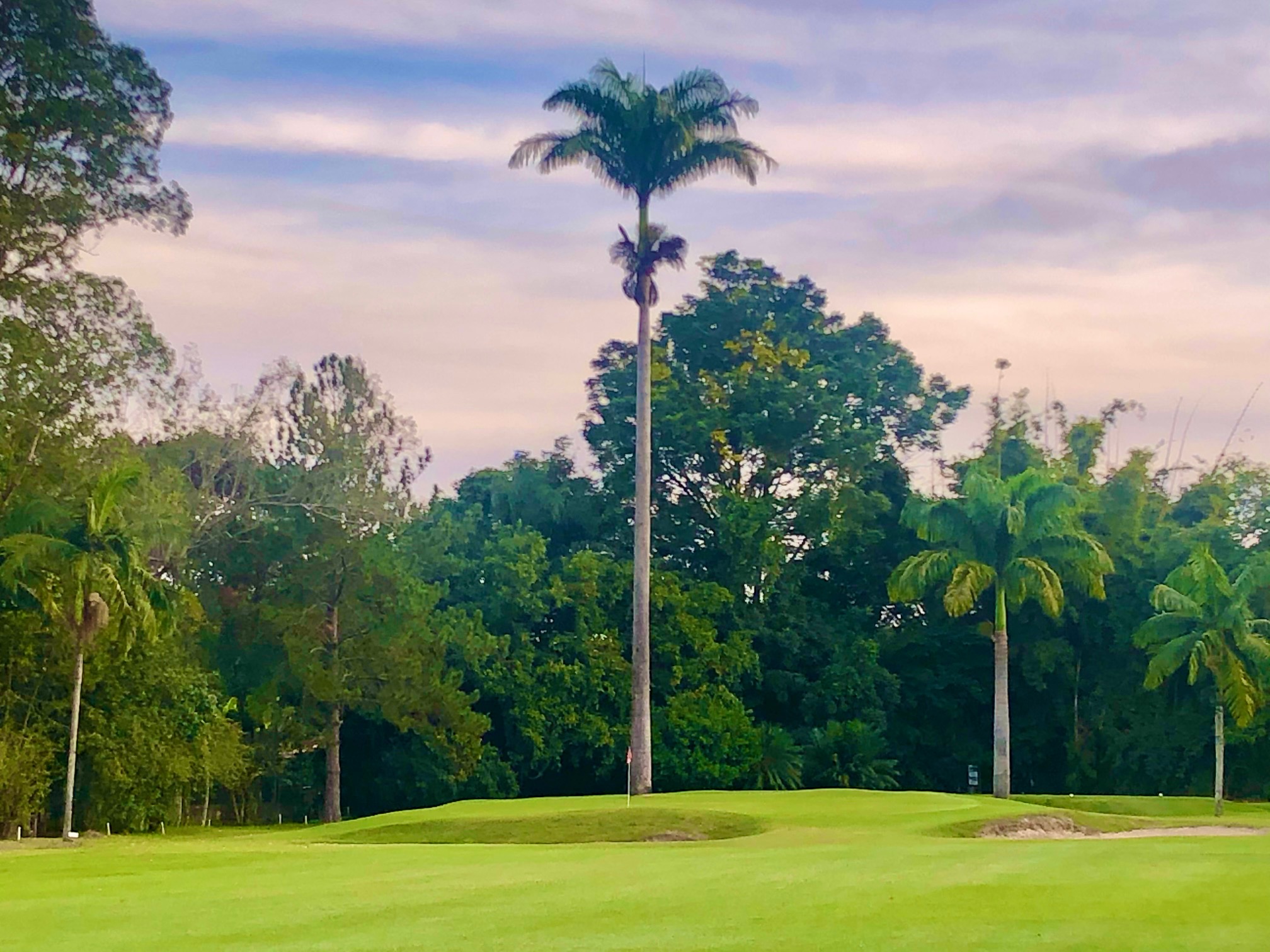 - Buraco 2, par 5, com um coqueiro no meio do green, Santa Rita, São José dos Campos.