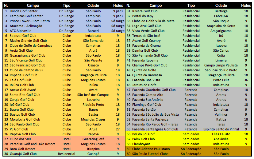 Fontes: Federação Paulista de Golfe, GolfPass, CBG e adaptação do próprio autor