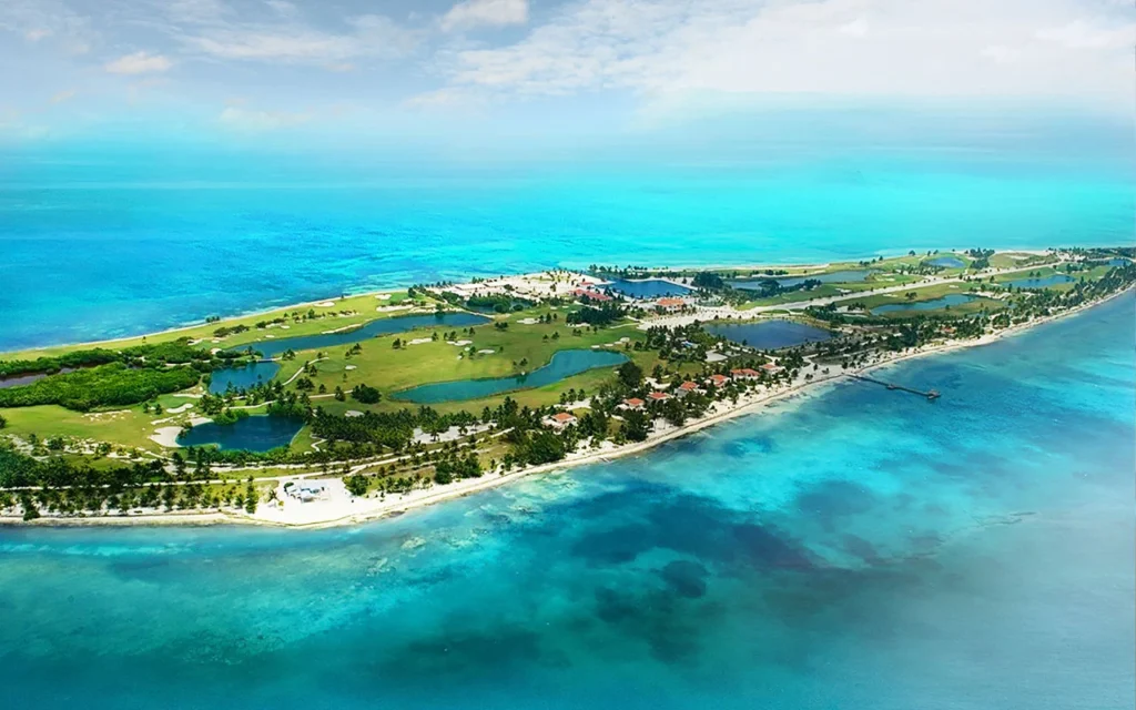 O campo de golfe projetado por Greg Norman de 10 buracos apresenta fairways longos e sinuosos e vistas espetaculares do oceano em todos os lados – incluindo o Buraco 4 (“The Blue Hole”), onde o green se estende em direção ao Caribe.