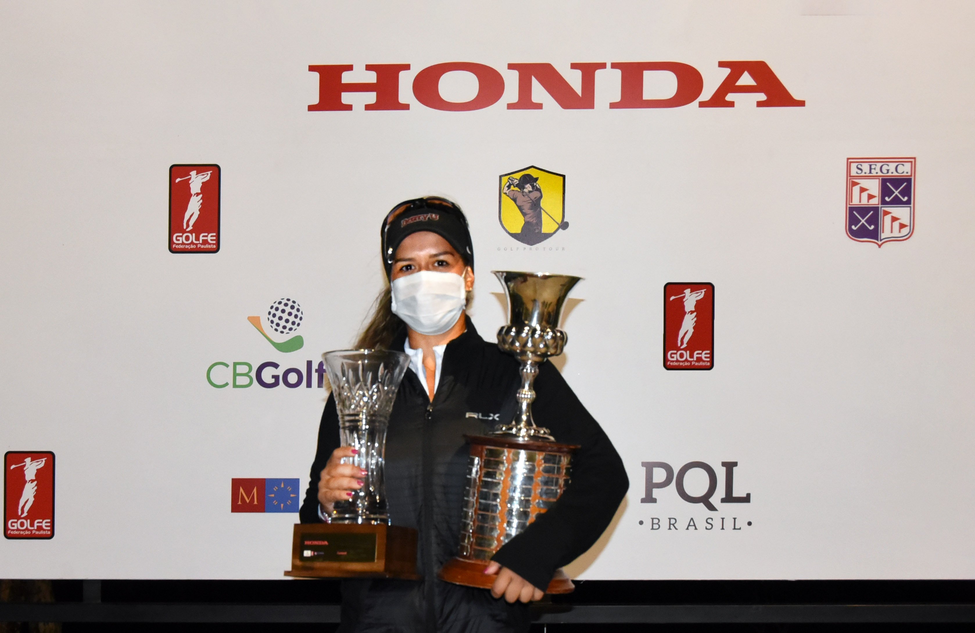 No feminino, ninguém pode com Lauren Grinberg, agora no São Paulo GC, que venceu com 148 (74-74) sem nunca ser ameaçada, para manter sua hegemonia no Aberto de São Paulo, agora como pentacampeã (venceu em 2016, 2017, 2018, 2019 e 2020). Manu Barcellos, que já jogou pelo RS e RJ e agora pelo Quinta da Baroneza, onde pai, Nico, é head-pro, foi a vice-campeã, com 166 (82-84) tacadas, seguida por Gabriela Arantes, do São Fernando, com 167 (86-81).