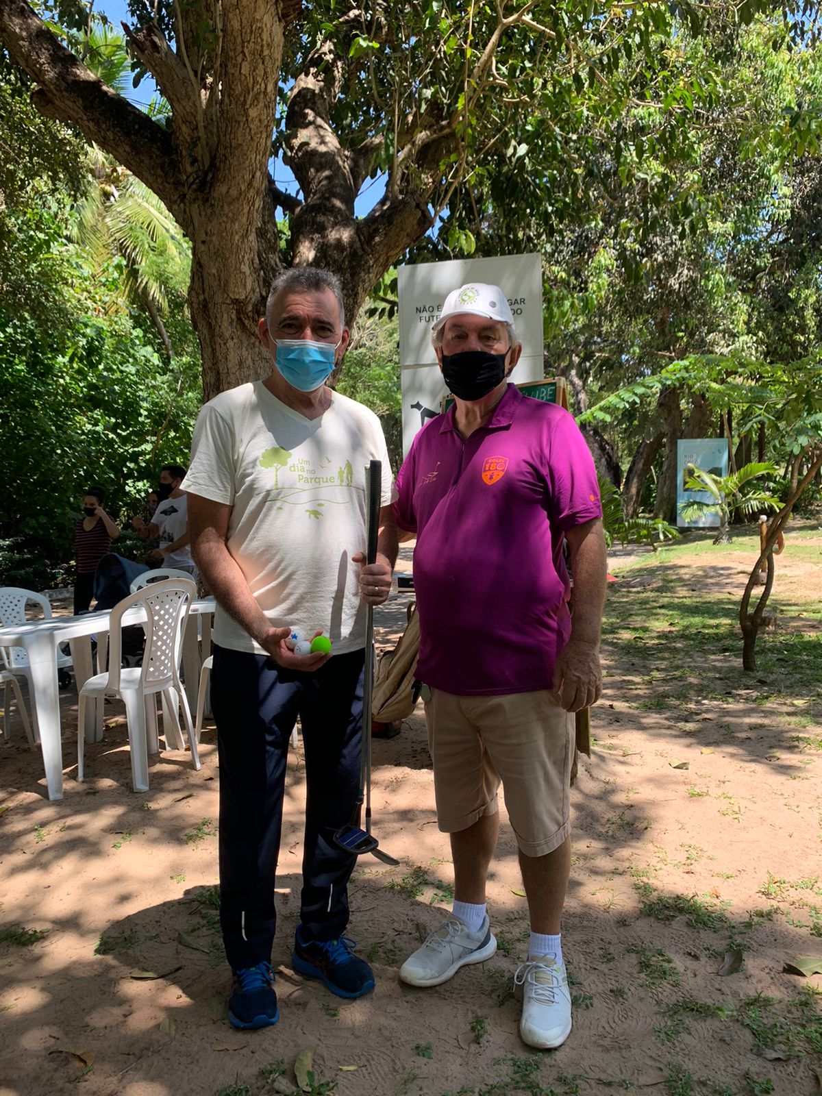 O torneio contou ainda com a participação de vários servidores da Secretaria do Meio Ambiente e de usuários do Parque recrutados na hora. “O evento tem como objetivo divulgar o esporte mais fascinante que a humanidade inventou, realizando torneios de duplas com apenas um taco (putter) nas manhãs do último domingo de cada mês”, diz Antenor Naspolini, coordenador do projeto do golfe no Parque do Cocó.